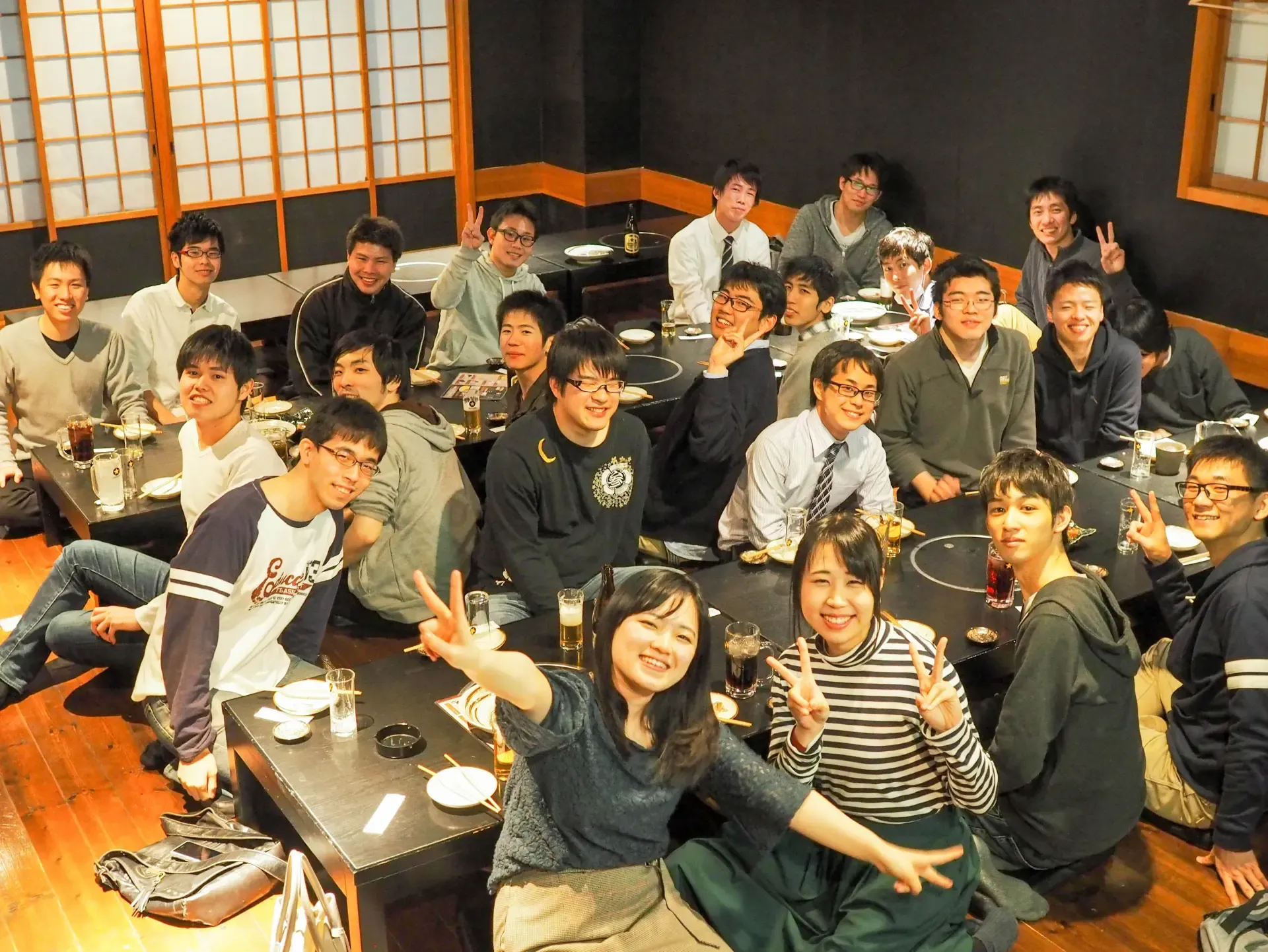 卒業式の当日に行った追いコンでは,卒業生を含め学生24名+先生+サプライズOB・OG3名が参加しました. 卒業生の抱負や,今だから言える話など,とても楽しく盛り上がりました.