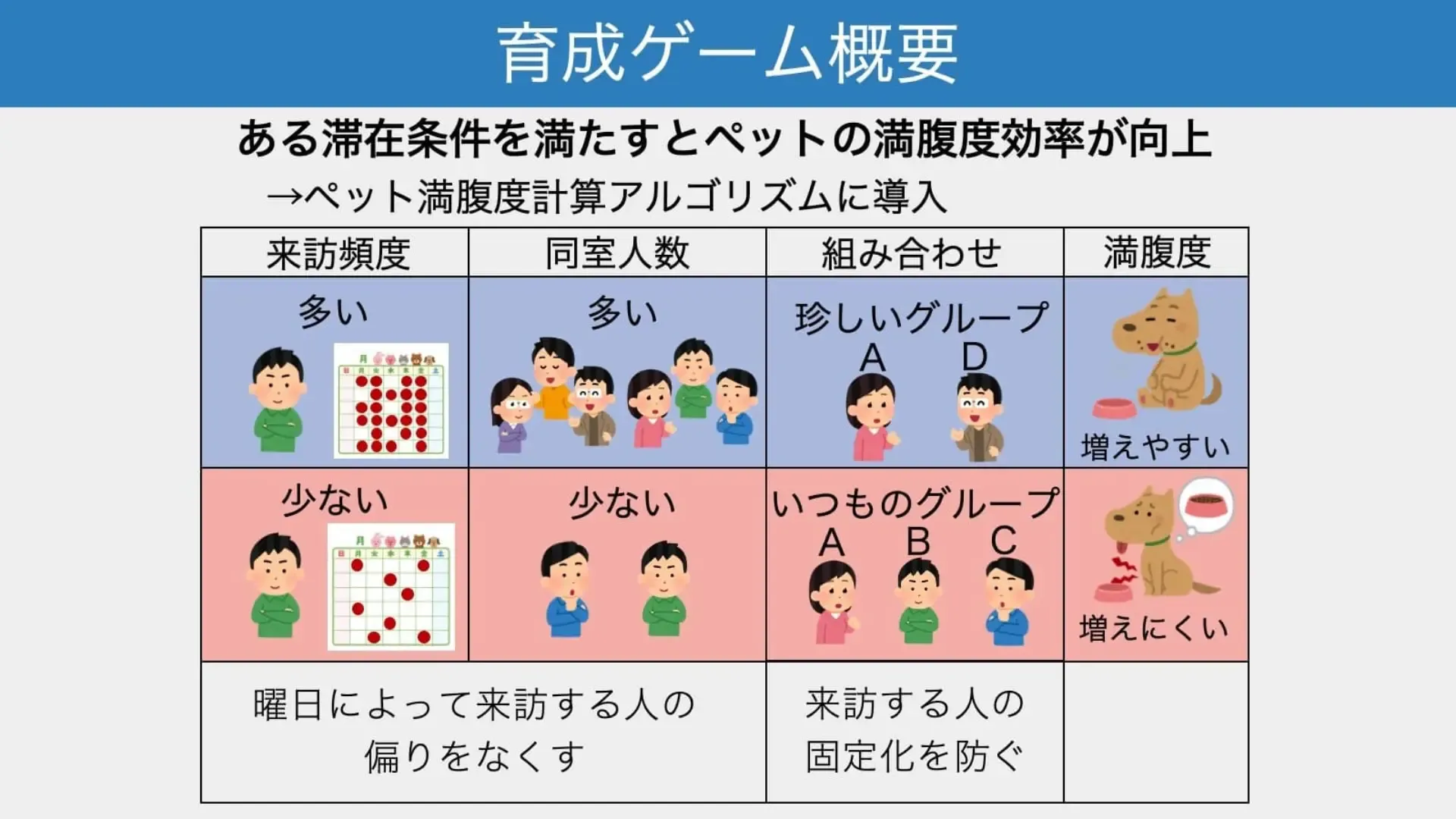 研究室やコワーキングスペースのような特定の人が来る場所は日によって来る人や訪問する時間が異なるため毎日活発な利用がされているわけではない. 本研究では10人から30人程度の人が集まる場所に強制ではなく,その場所に来たくなるような来訪促進システム開発を目的とする. また来訪促進に付随してコミュニケーションの促進を行いたいと考える. 来訪促進を行うアプローチとしてある人が部屋に滞在した履歴を使用し,滞在時間に応じてペットの育成が可能なゲームをゲーミフィケーションの考えに基づいて開発する.
