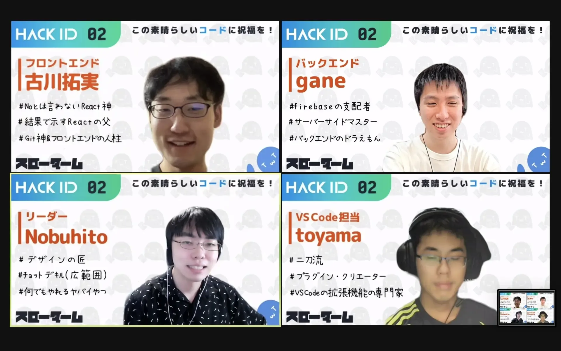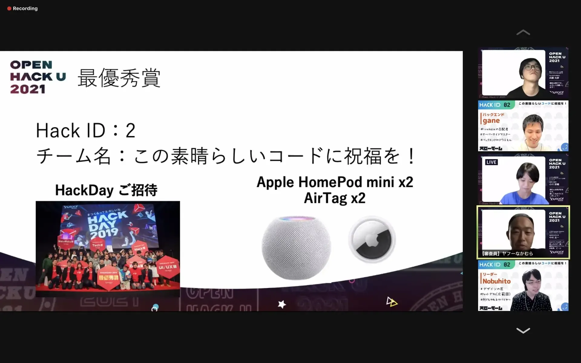 今回,開催されたOPEN Hack Uには梶研の宮川(M1),大鐘(M1),外山(B3)と菱田研の古川(M1)の計4人が参加しました.