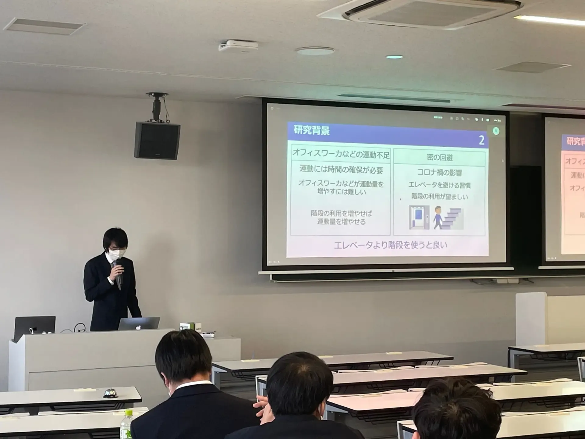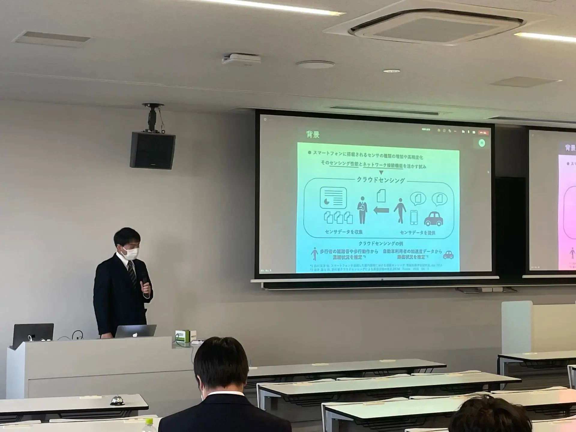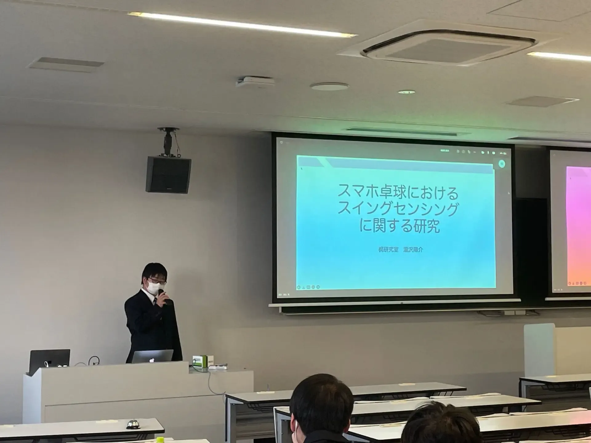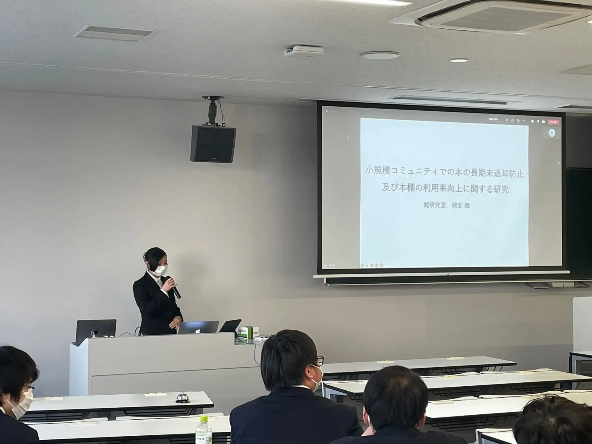 学部4年生の卒論・制作発表会が行われました. 学部生6名(卒論5名,制作1名)が,学部3年生の配属から2年間の研究成果を発表しました.
