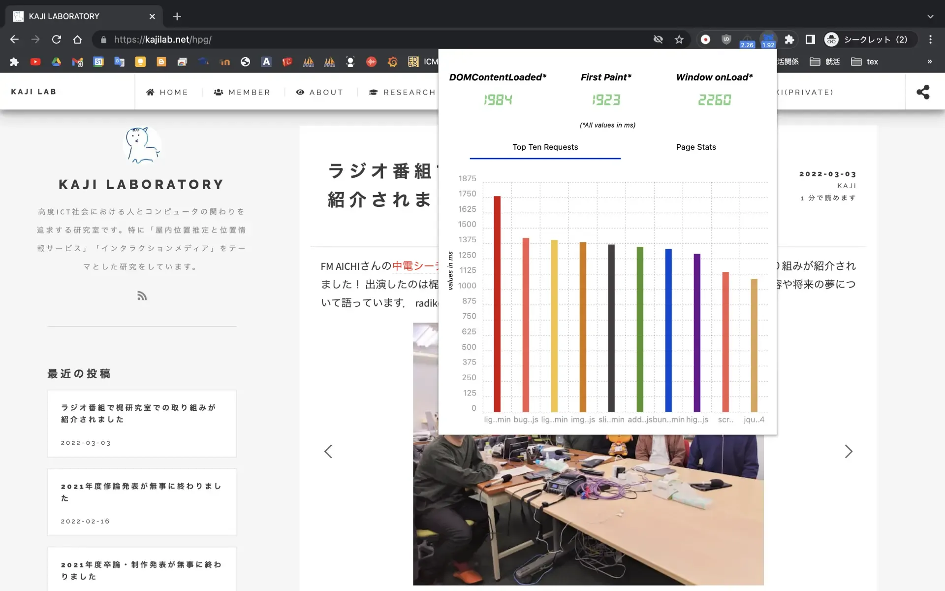 前まではWebサイトの管理にWordPressを使用していましたが,メンテナンスができていない,ロード時間が遅いという問題がありました. そこで,新たにHugoを使用した環境に乗り換えこの問題を解決しました. 2〜3秒ほど高速になっていると思います.