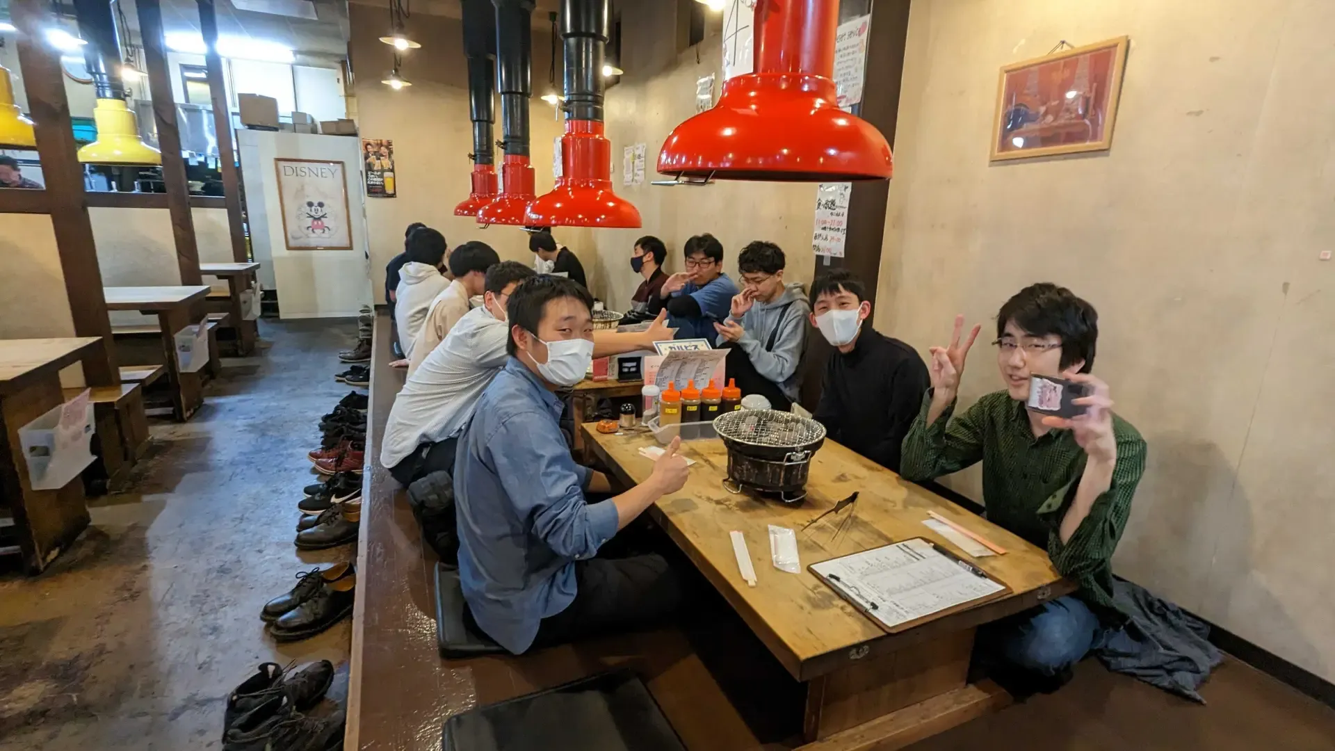 今回の送別会は七輪で開催されました. みなさんワイワイ楽しんでいました.