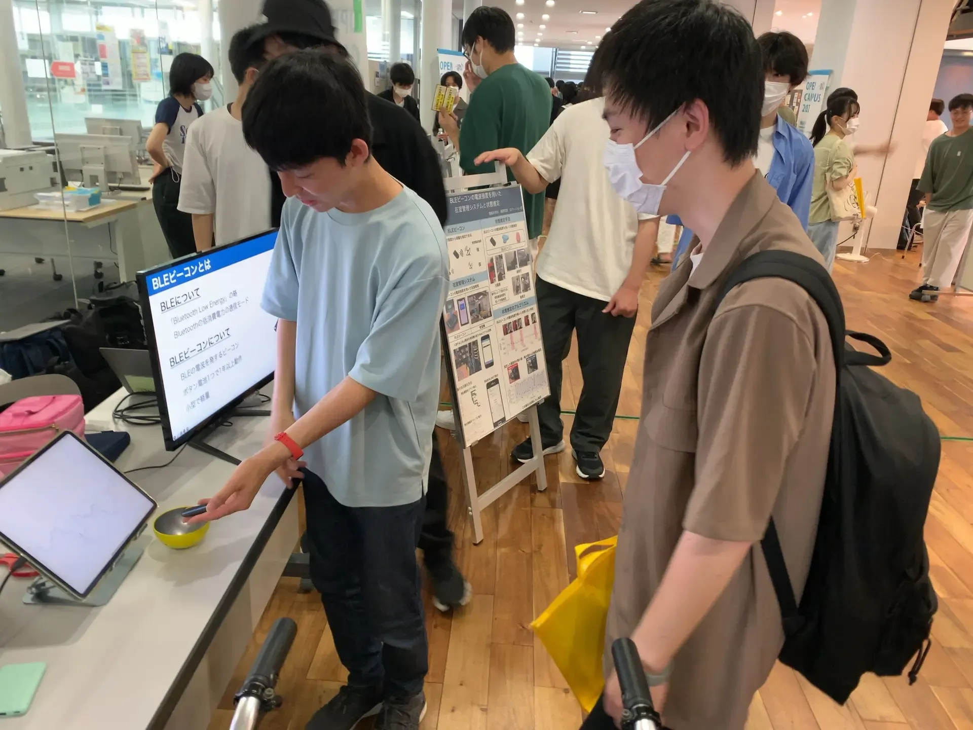 梶研究室ではBLEを用いた研究(BLEビーコンの電波強度を用いた状態推定・滞在ウォッチ)とスマホのセンサを用いた研究(心臓マッサージ練習アプリ・スマホ卓球)について紹介しました.