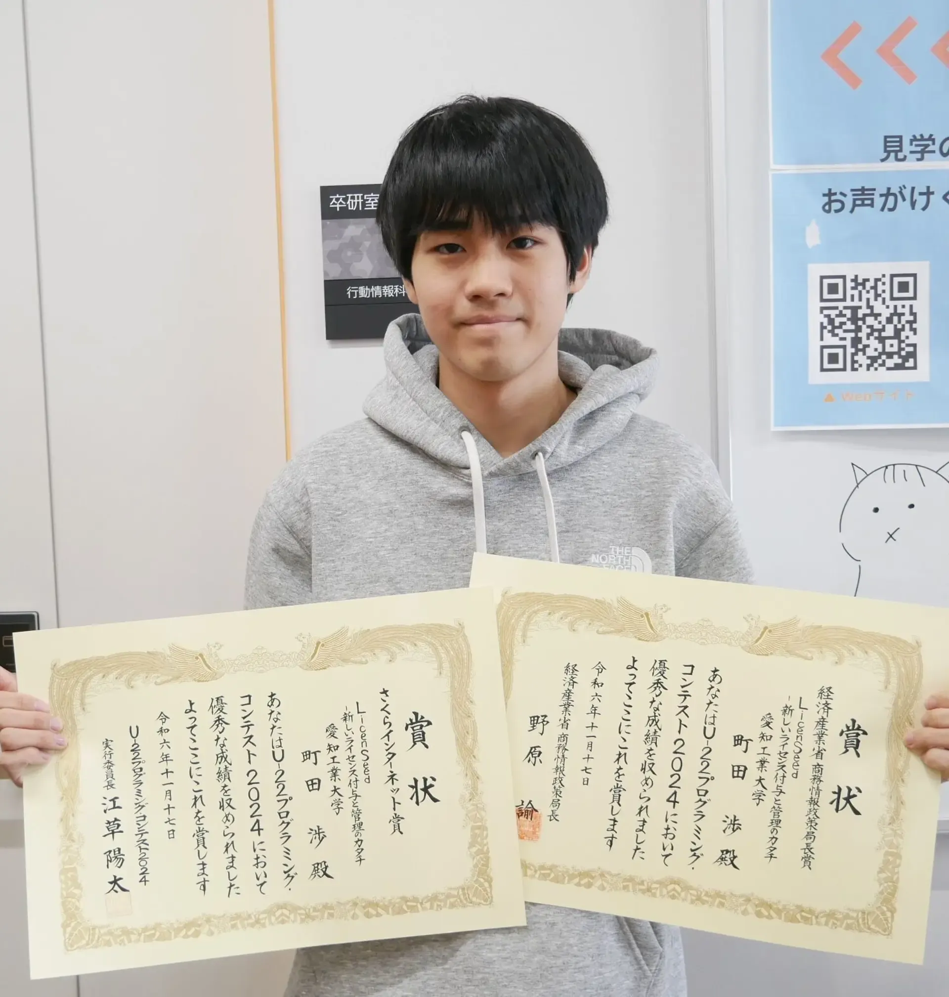 B1のmachidaが11/17にアマゾン・ウェブ・サービス・ジャパン合同会社で最終審査会が行われた「U-22 プログラミング・コンテスト2024」で,経済産業省商務情報政策局長賞<テクノロジー>と,さくらインターネット賞の2つの賞を受賞しました.